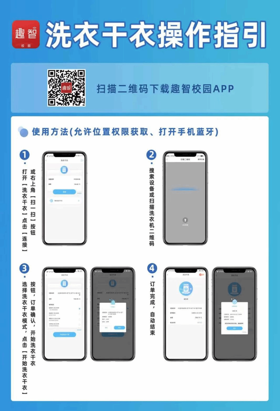 2138CC太阳集团公共区域设有洗衣机。洗衣机使用说明如下:
